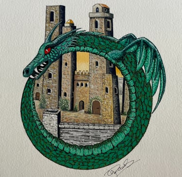 I first came across the term when researching the Battle of Montaperti, a very famous battle for anyone familiar with Italian history (and specifically Tuscan, since Italy was not a unified nation until 1861, when it became the Kingdom of Italy). For those not familiar, the Battle of Montaperti was the bloodiest battle of the Italian Middle Ages, which, in a land and time known for extreme bloodshed, and mindless vengeance, is really saying something! Montaperti was the culmination of a longstanding rivalry between Siena and Florence, and the catalyst for further battles for Tuscan supremacy between the two city states. But the animosity was not just geographic; it had its roots in politics. At the time, Germany ruled much of Italy, and many of the states (that we now know as regions of Italy) were either in support of the German Emperor or the Pope. The Imperial supporters were known as Ghibelline and those in favour of the pope were called Guelf. These parties, or factions, were also divided on a class level, where Ghibelline came to stand for nobility, and Guelf, for those from the middle, merchant, class. Thus, there was some cross-over where papal supporters might end up fighting for the Ghibellines and some noblemen might be on the side of the Guelfs. Equally, while one city might predominantly hail as Guelf or Ghibelline, within that city would be supporters of either faction. In fact, many cities were perpetually living in a state of civil war at this time. This background is important and relevant to the story of The Power of the Wouivre, but also to the symbol of the wouivre itself. Many of the Ghibelline emblems would have the wouivre, in one form or another, on their standards. In fact, it was such a well-known symbol that it even became adopted by many Guelfs who would show the wouivre being subjugated by one of their own symbolic animals such as a griffin or eagle.